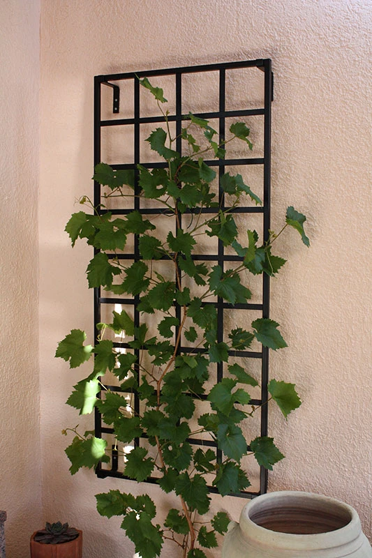 28″ wide Wall Trellis lends itself to many architectural styles. Measure 28″ W x 5′ H. Crafted from galvanized steel tubing and bands powder coated black.