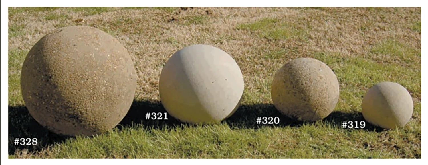 Concrete Garden Spheres offered in 4 sizes. Crafted from fiber reinforced concrete, our spheres carry a one-year warranty. First photo shows Sandstone Textured. With the use of Tennessee River pea gravel, this finish choice gives the spheres a textured surface and nice contrast with the concrete. Production generally takes 3 to 4 weeks.