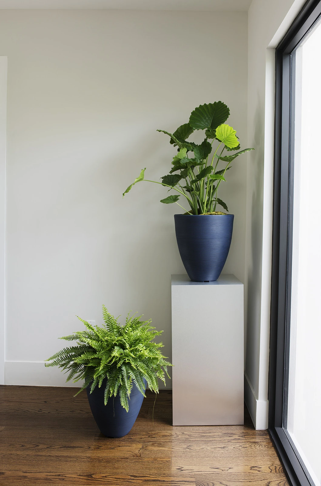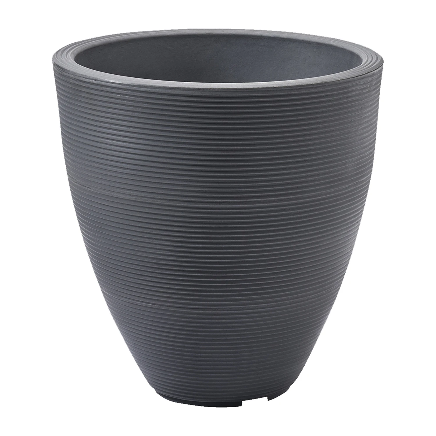 Delano Tall is a durable lightweight resin planter with a ribbed texture measuring 16″ in diameter x 18″ tall.