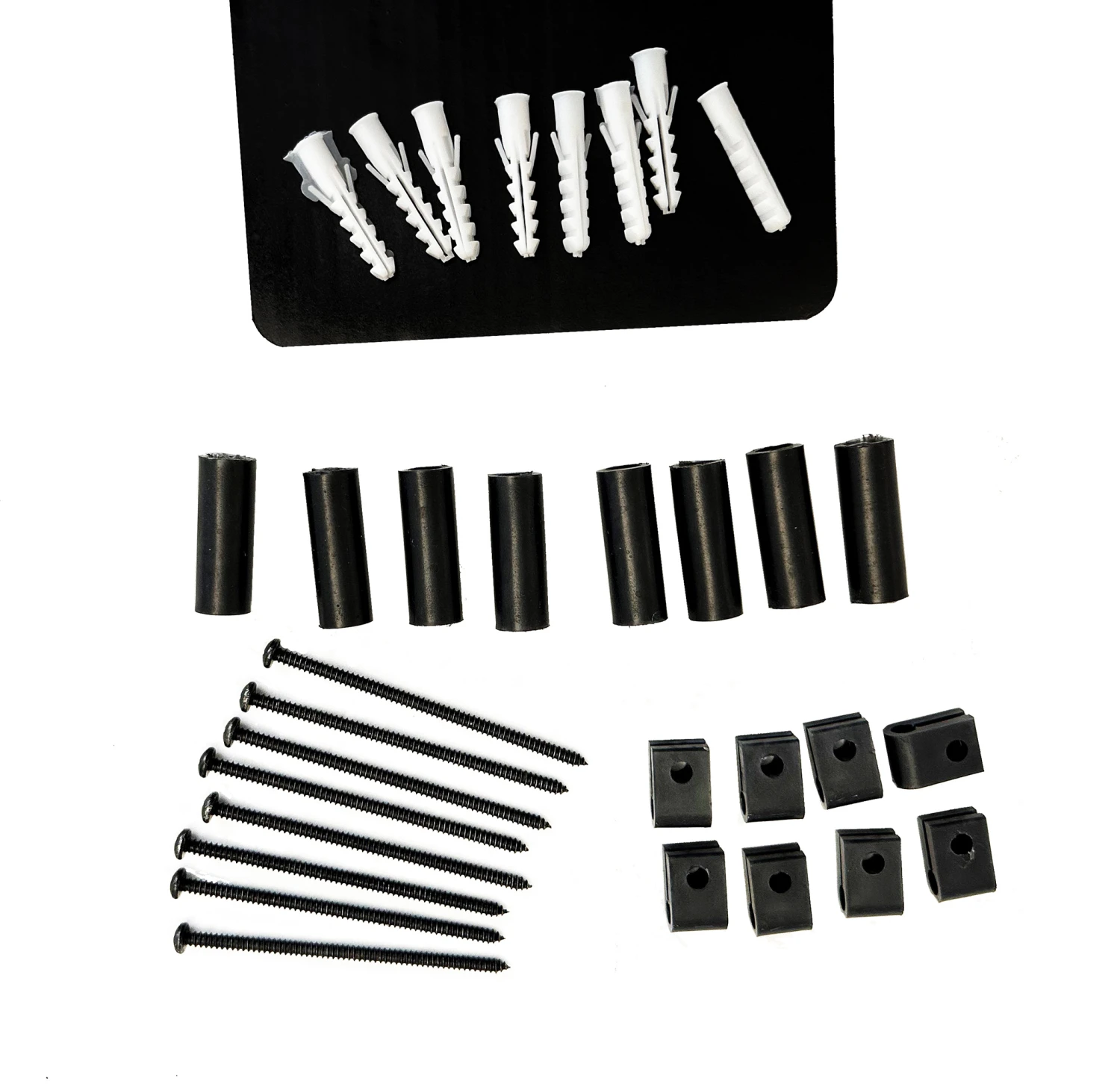 The Fixing Kit for lattice wall trellises consists of 6 cleats that attach to your wire lattice, 6 spacers to keep lattice away from wall, along with the screw and molly to attach to your wall. Screws are 4″ long.