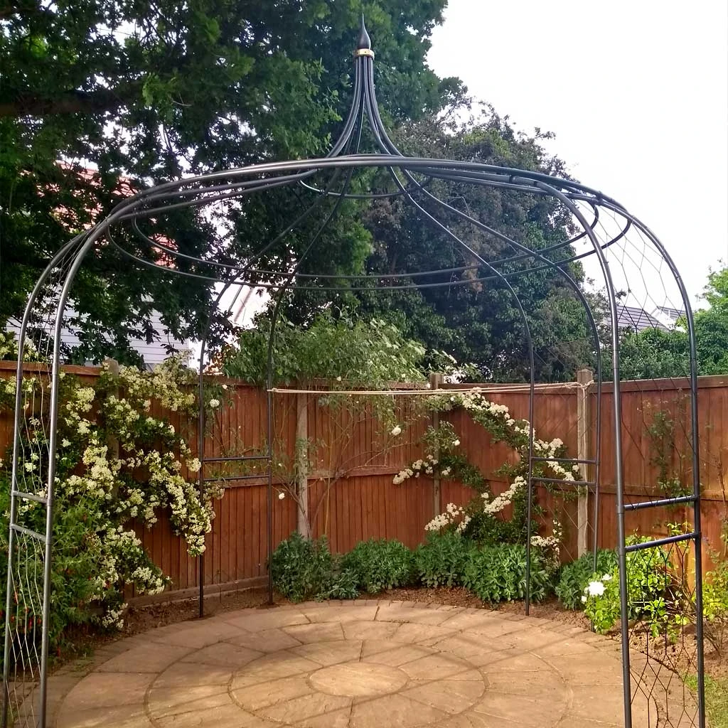 The Agriframes Gothic Gazebo has four openings that measure approximately 1/2 of the diameter of your gazebo. Often used at the junction of paths, over a statute or as a feature and focal point. Infill is an optional extra.