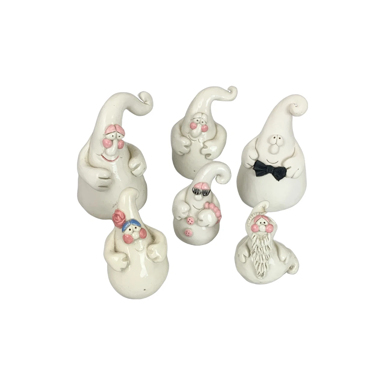Decorate your home for Halloween with these imaginative hand-sculpted ceramic collectibles from Maryland artist Gail Lyman. Almost 70% of American households decorate for Halloween, with family-friendly themes the most popular. Gail’s creations certainly fit the bill, exuding a spooky spirit combined with a sweet innocence and joy. Figures include goofy ghosts, costumed snowmen, and whimsical witches, just right for adding seasonal ambience to any room or gifting to that Halloween fanatic friend. Gail has now retired, so these one-of-a-kind original pieces will not be replicated—each is marked with the GML stamp to assure authenticity.