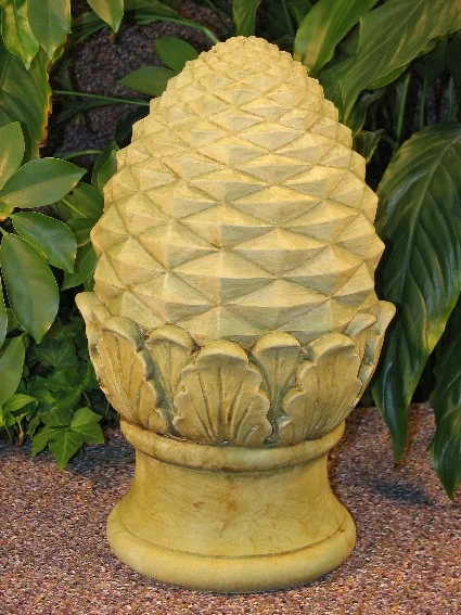 Long a symbol of hospitality, the pineapple is a favorite decorative motif for designers everywhere. Our Large Pineapple Finial will welcome your guests in good taste. The finial stands 14″ tall. Hand-crafted in cast concrete and available in five color stains. Click the + next to color stains to view color samples.