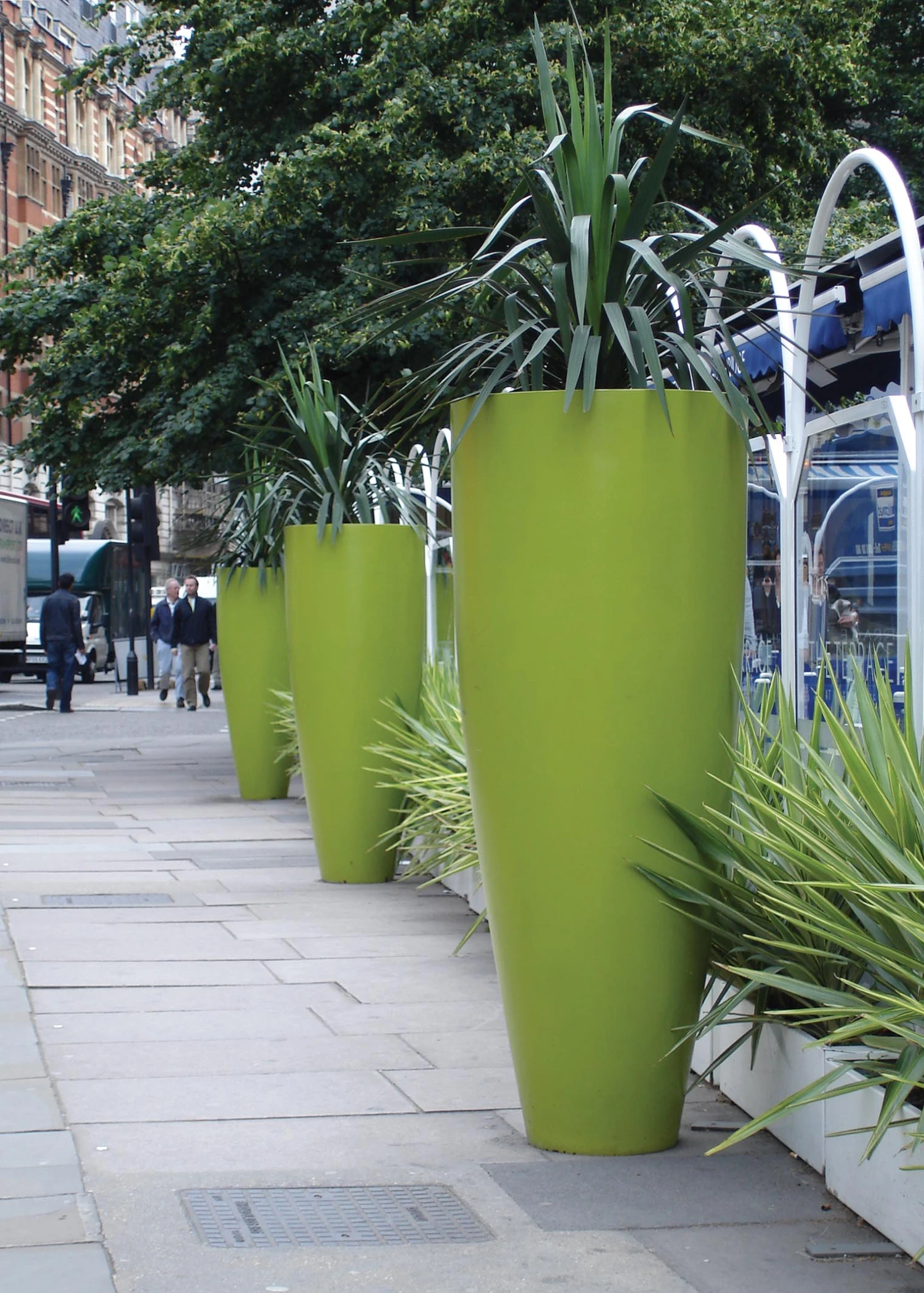 The clean modern lines of the desirable Lisbon planter makes it a real statement piece. Made of fiberglass they are suitable for use inside and outside in the garden. Their elegance and scale make these planters a first choice for designers.