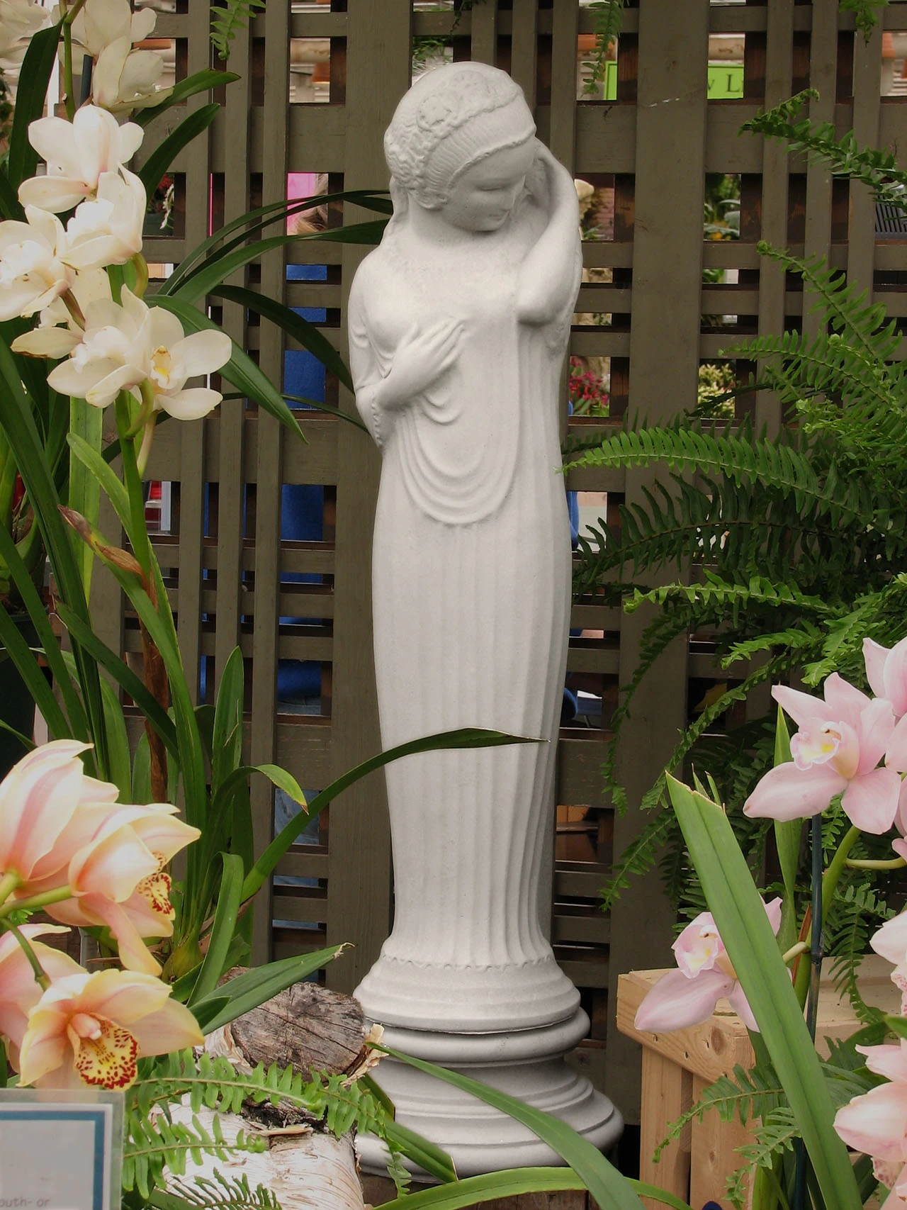Alphonso Iannelli’s Magdelena is a stylized art deco female form. The original piece was a glazed terra cotta sculpture created 1911-15. Our Magdelena stands 41” tall (height includes the base) and weighs 73 lbs. Hand-crafted in cast concrete and available in five color stains. Click the + next to color stains to view color samples.