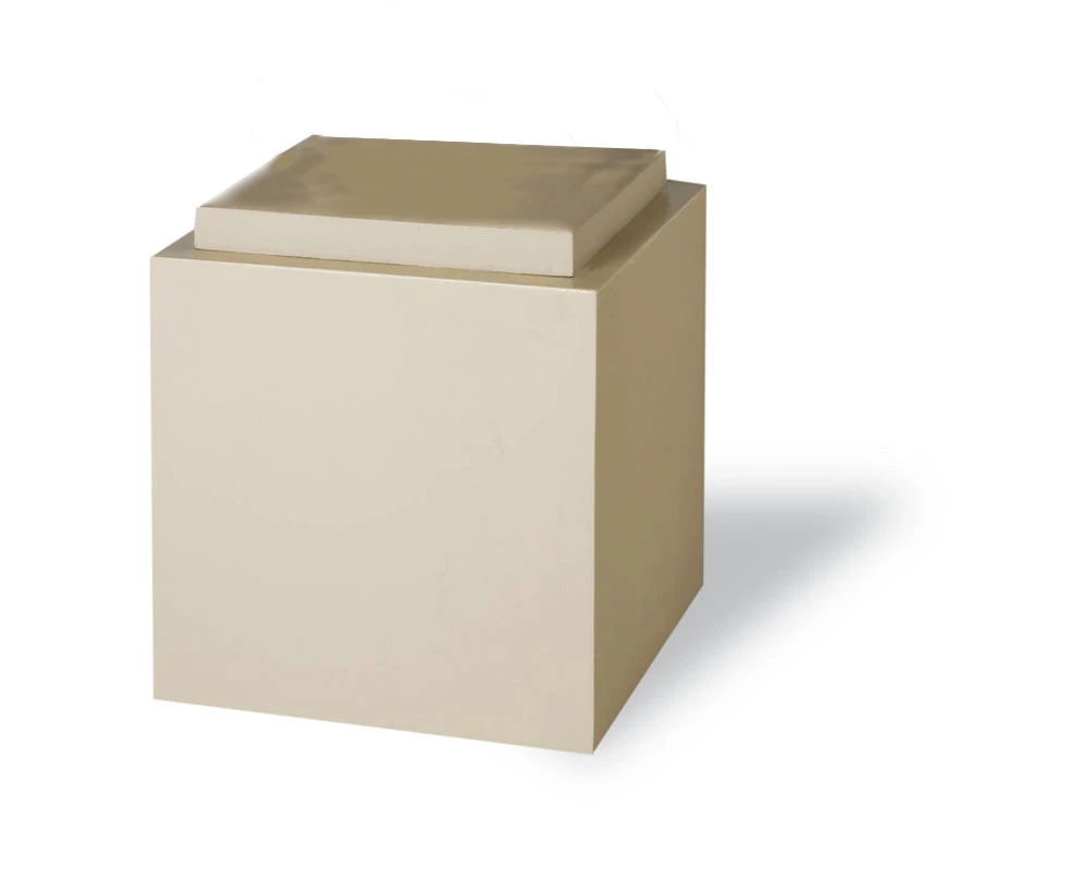 Pedestal 54 measures 21″ x 21″ with a simple design working well with many planters. Shown in photo with Roman Urn. Urns not included.