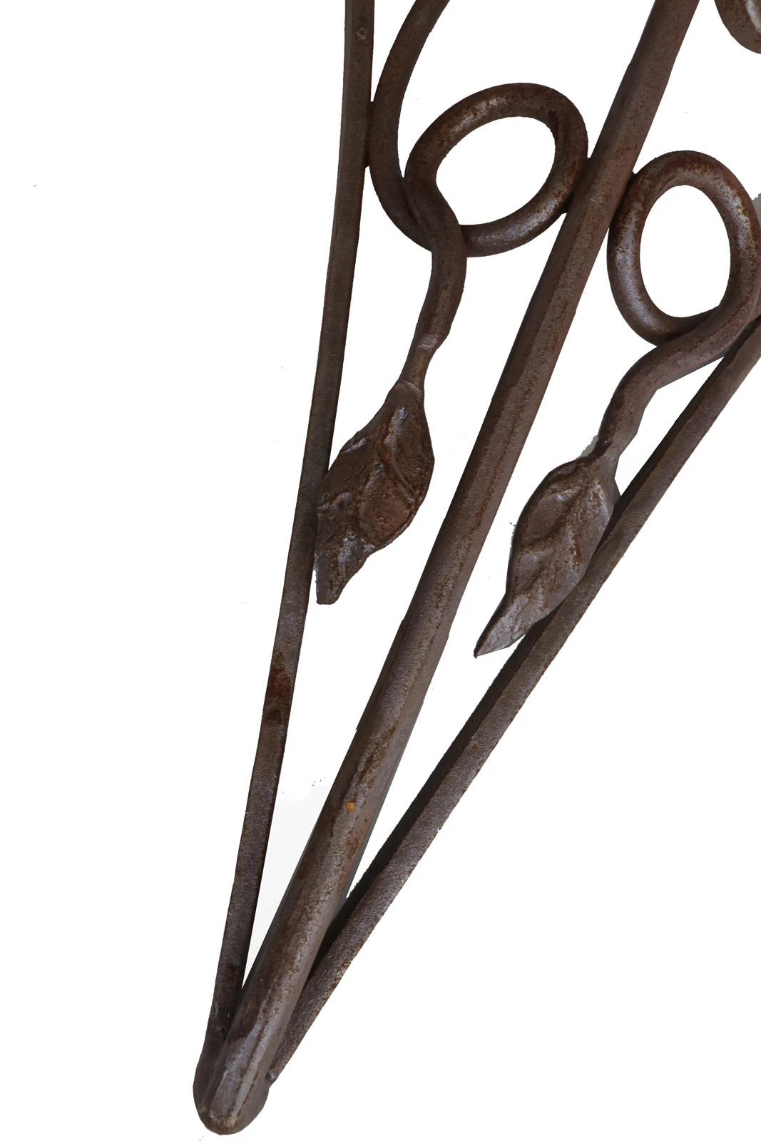 Set of 2 solid wrought iron Pendants measuring 20″ W x 24″ H. Natural rust. Hang holes provided. May be used indoors or outdoors.