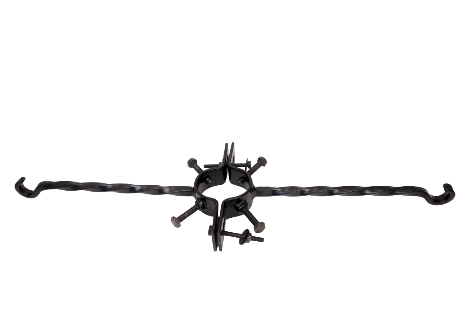 Single Gas Lamp Style Bracket sized for residential use. Strong steel construction coated with black PVC for rust prevention. Overall width 28″. Fits 2″ to 3″ poles.