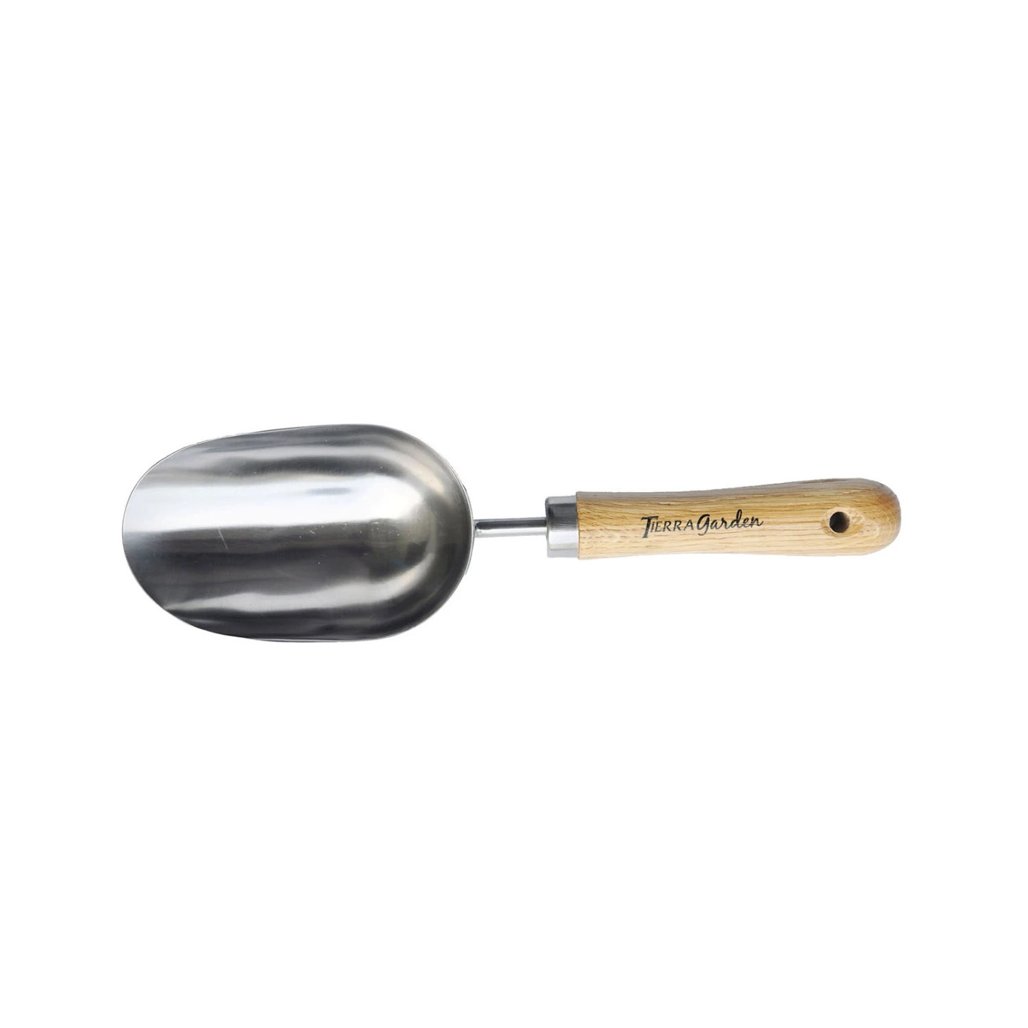 A quality tool at an exceptional price! With its rust resistant stainless steel head and hardwood ash handle, this Garden scoop is made to last season after season. 5 year warranty against manufacturer defects and workmanship.