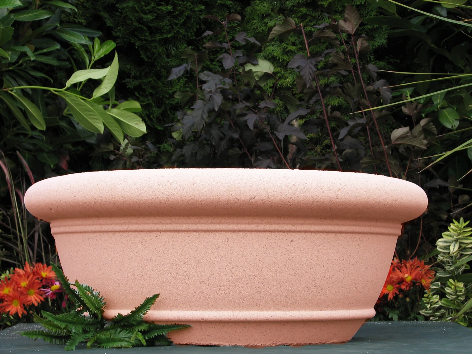 The Sussex Bowl is cast stone low bowl planter offered in four diameters.
