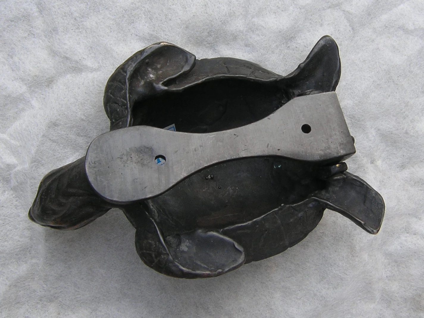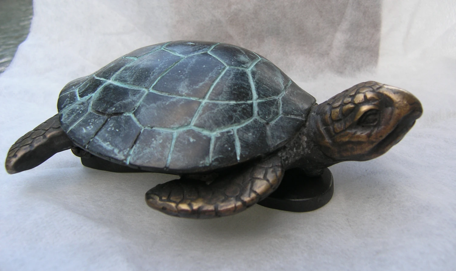 Solid brass heavy-duty turtle doorknocker. Beautiful verdigris highlights on the turtle shell. Natural brass color on legs and head.