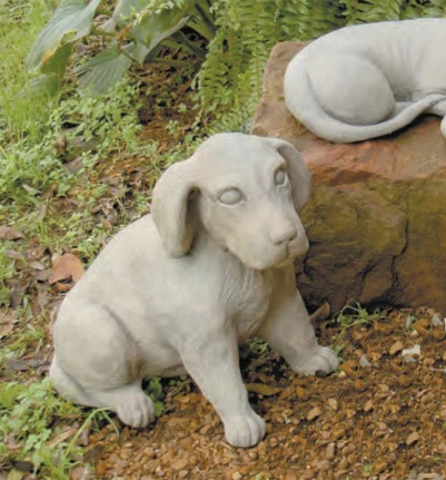 This sweet pup is everyone’s best friend. With his gentle expression, floppy ears and big paws, you won’t be able to resist patting this lovable little fellow on the head when you walk by. He’ll be happy to sit quietly in the garden and wait for you!