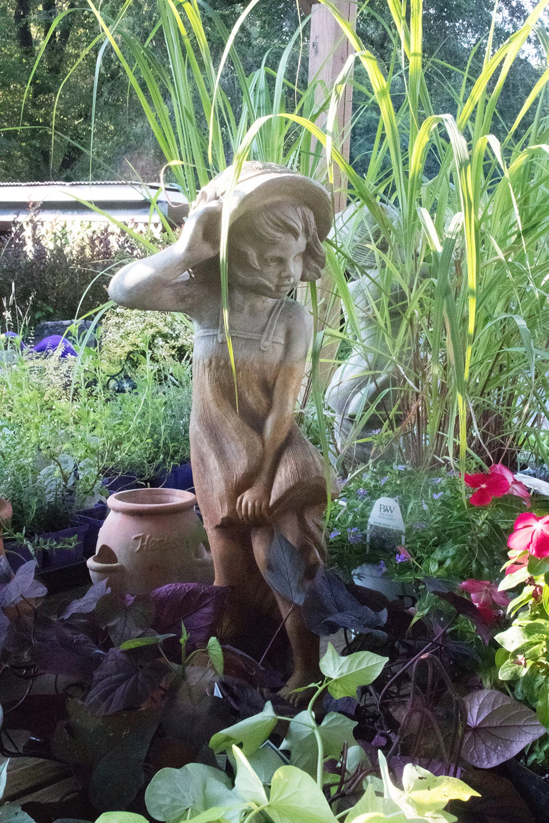 Windy Kerrigan is an adorable cast stone statue of a young girl holding her hat and dress in the wind. Crafted by Henri Studio. Carries a one year warranty.